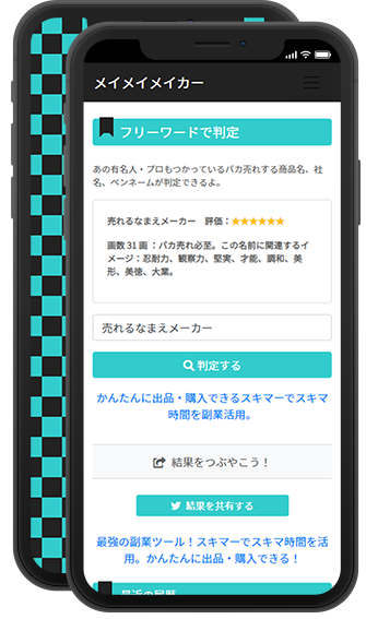 ネーミングセンスが無くても大丈夫です。 無料で売れる名前を何回も作成できます。